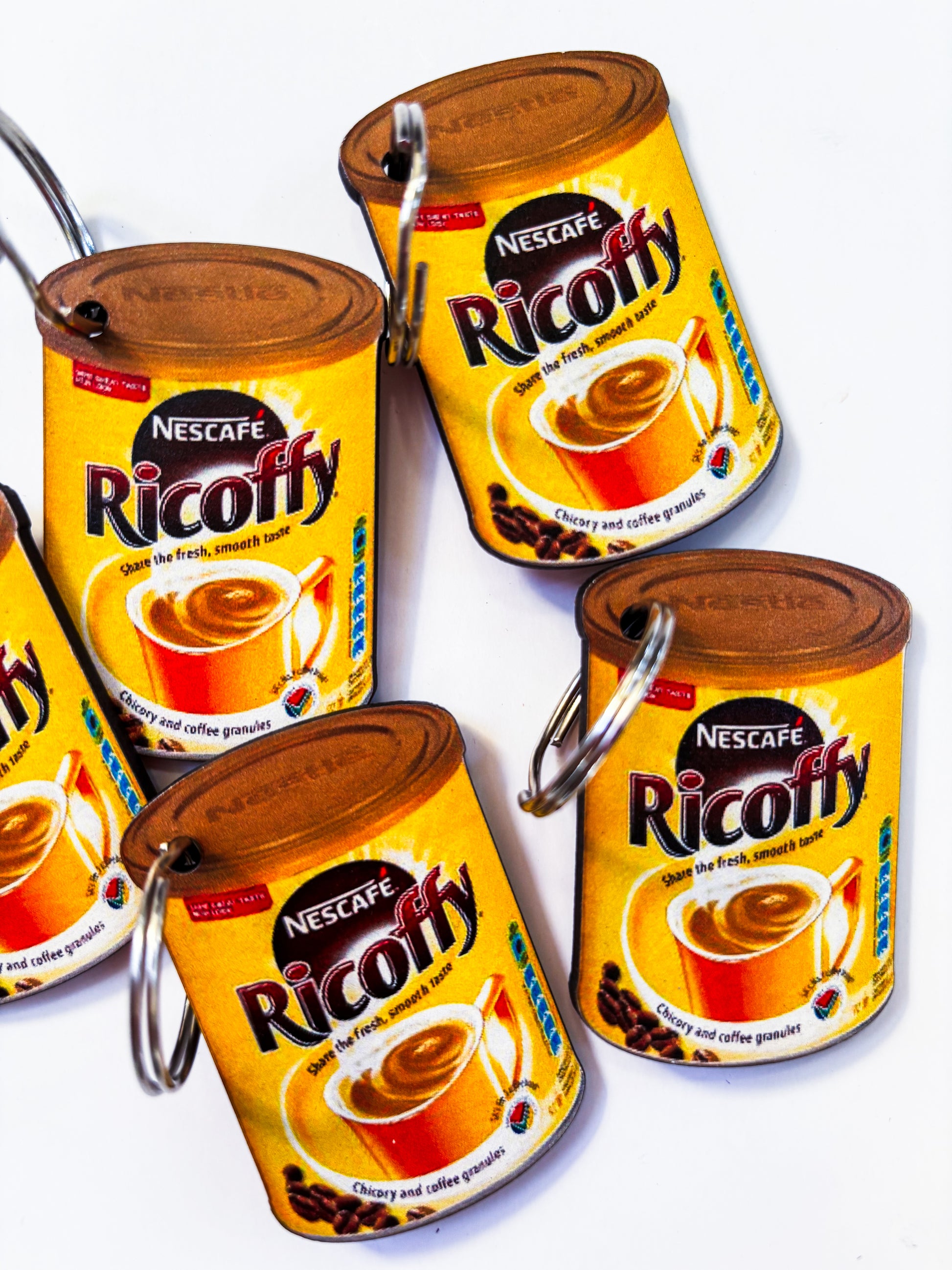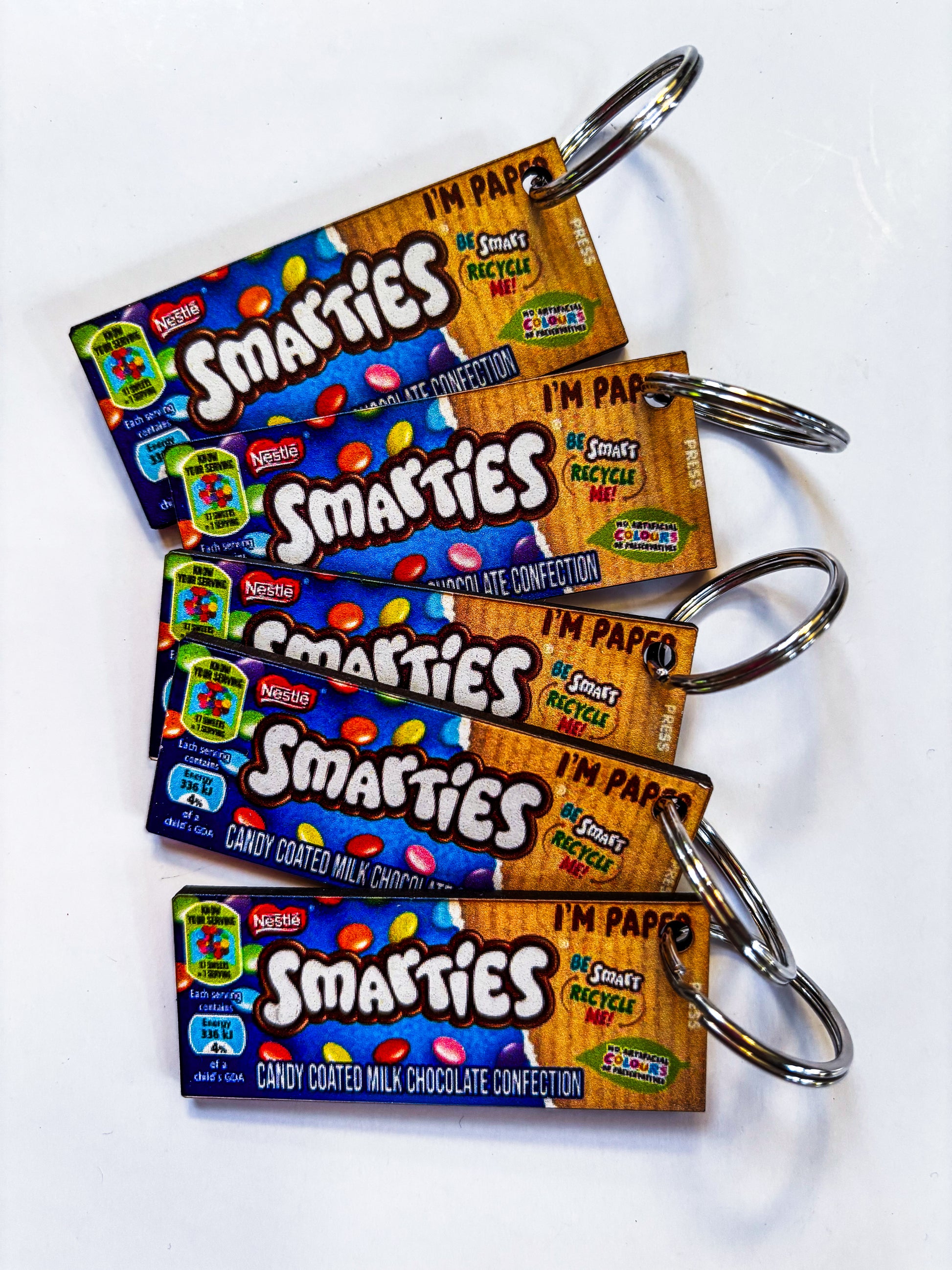 Each keyring is printed directly onto lightweight wood (no resin), making them durable and easy to carry. Sizes vary depending on the design – most are around matchbox size, with some slightly bigger or smaller.